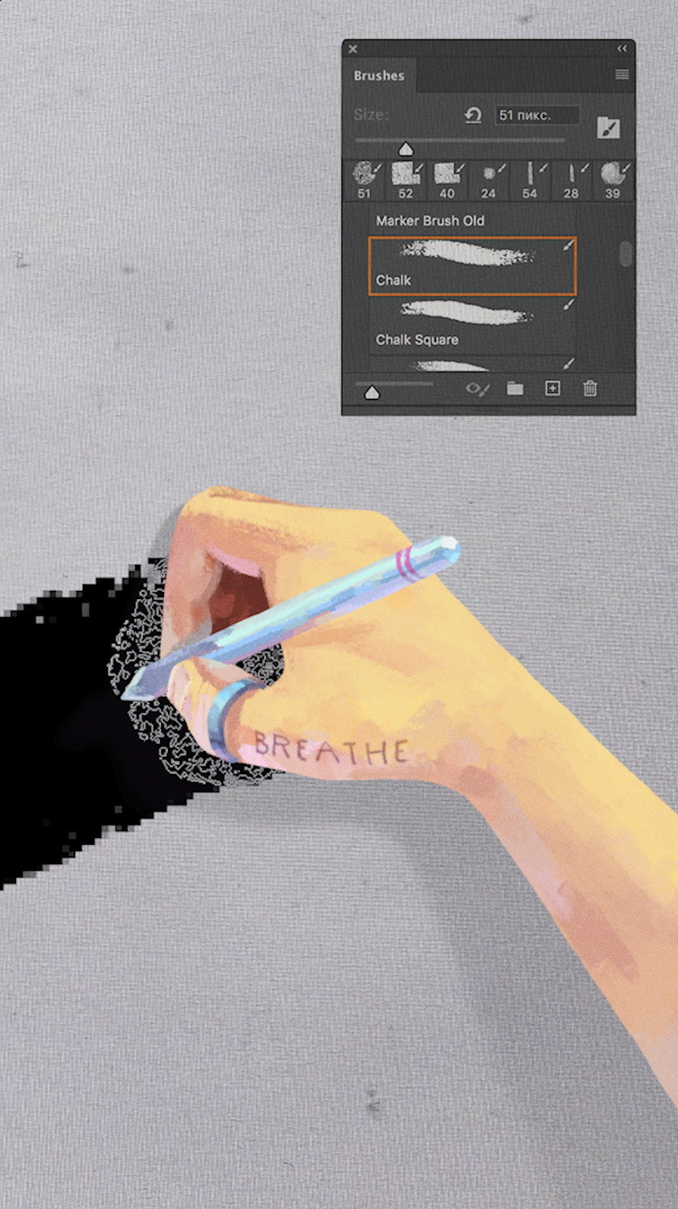 We turned Keith's markers and chalks into digital brushes and then we used them